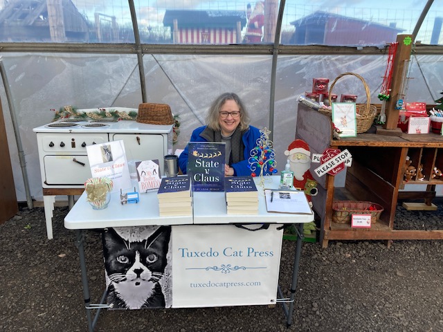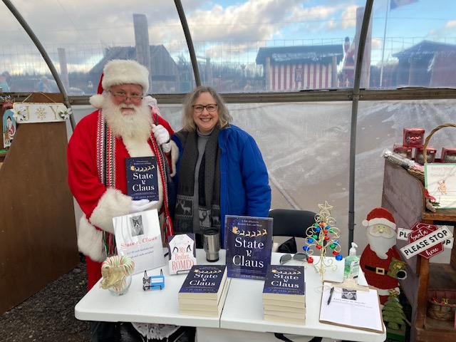 We were both at a local Christmas tree farm on a breezy Sunday. I was selling and signing books; he was welcoming children. My table was in the greenhouse where the Christmas tree shop had been set up, while he was located at a flagpole a little way down the parking lot. The greenhouse’s plastic that fluttered in the brisk wind. Mrs. Claus (who was indoors) occupied a chair several feet from my table. The checkout counter for regular shop patrons was on the other side of the greenhouse, easily twelve feet away. After Santa left, I did remember my mask, and I wore it whenever customers came in. Afterward, when I went with friends to the Lessons and Carols service at church, we all wore masks inside, shedding them only when we went outdoors afterward.